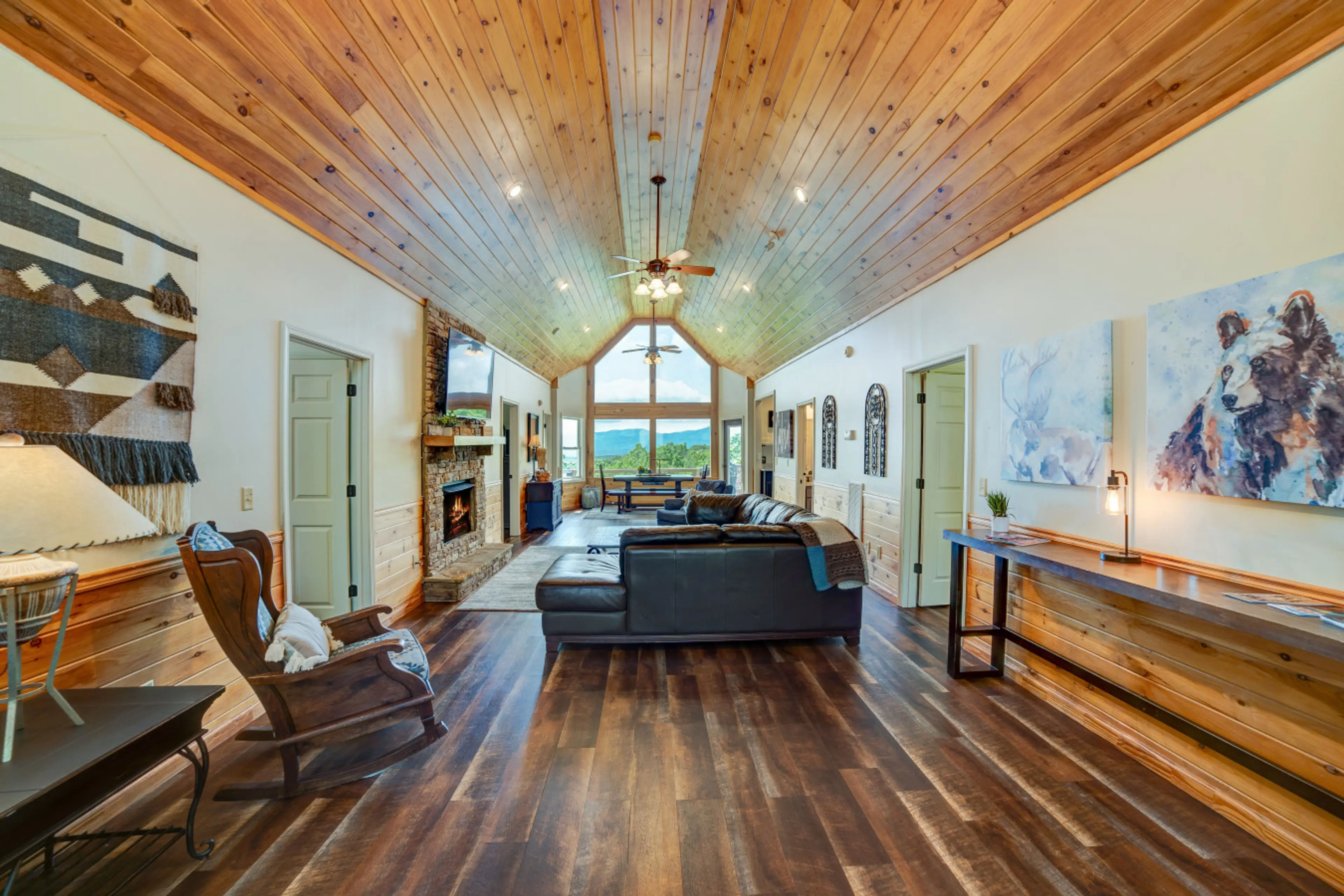 Welcome to Sky High Sunset Cabin A multi-level mountaintop escape where sunrise meets sunset unforgettably. Perched in the heart of the Blue Ridge Mountains, this 5-bedroom cabin + delivers jaw-dropping east and west views from the big bay windows—and even better from the hot tub, deck, or fire pit...